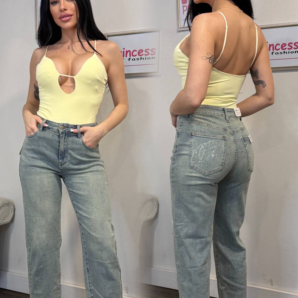 Adalberta jean . Τζιν με στρας πισω ειναι balloon feet . Εχει εξαιρετικη εφαρμογη . εχει νουμερα απο XS εως xl